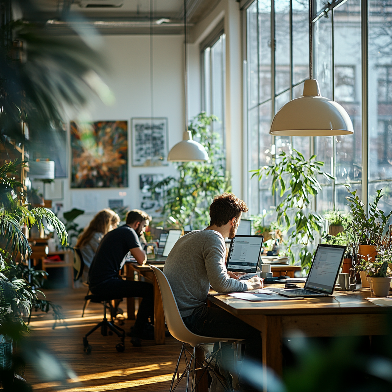 The open-plan layout is equipped with advanced technology and ergonomic furniture, ensuring that employees can focus in a bright and tidy space.