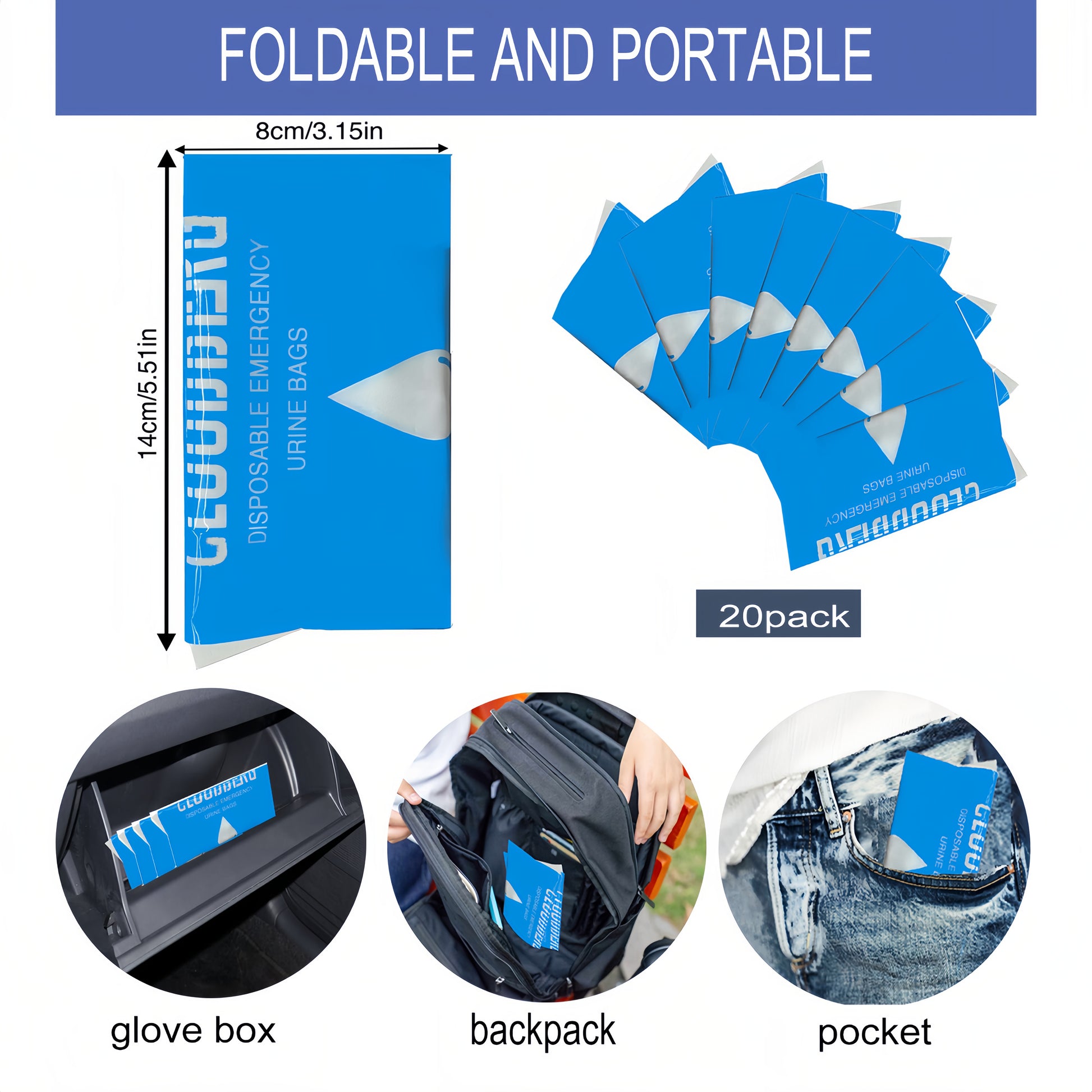 【Compact and Foldable】Each disposable travel urine bag is individually packaged, making it very light and portable. The folded size is 6 x 3 inches, and each bag weighs 0.6 oz. You can easily carry it as It is foldable and compact enough to fit in your pocket, purse, handbag or vehicle glove box.